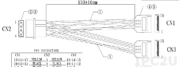 Кабель питания 4-pin SATA x 2, до 15В, ПВХ