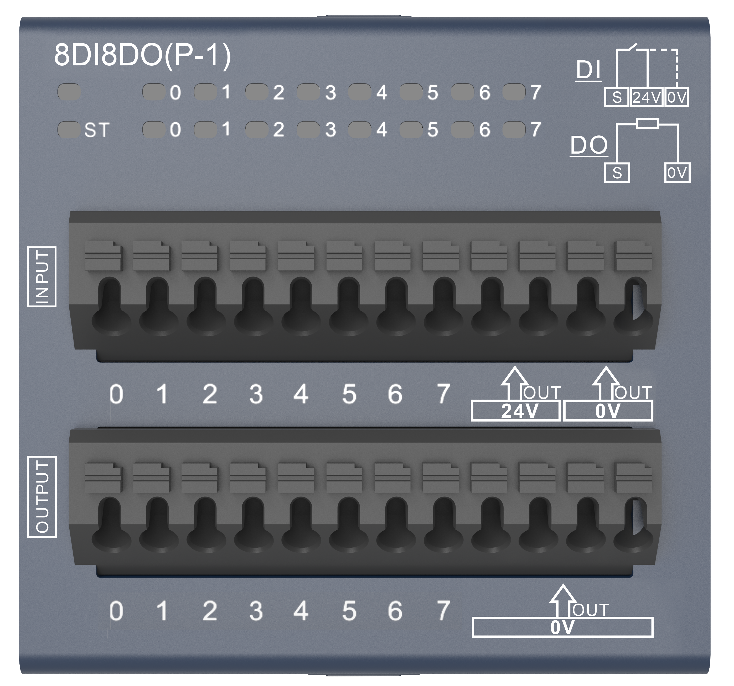 Модуль ввода-вывода, 8-канальный дискретный ввод (PNP), 8-канальный дискретный вывод (PNP), 24 VDC