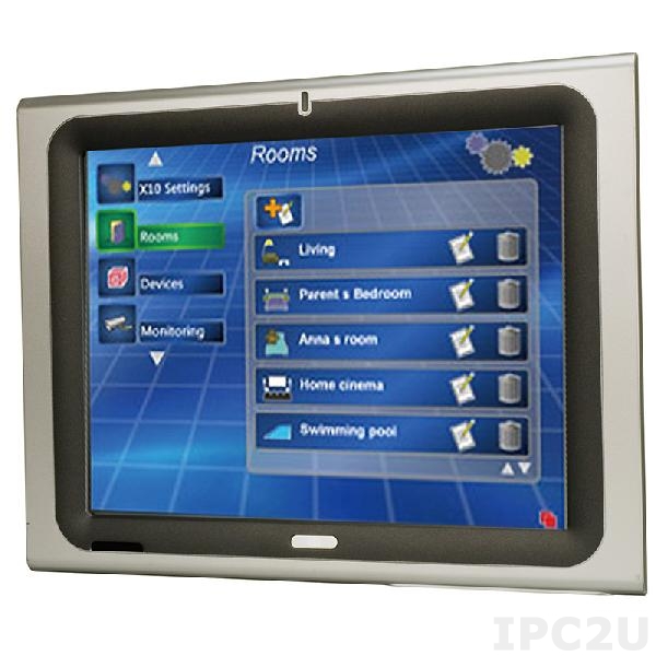 Безвентиляторная панельная рабочая станция с 15" 250кд/м2 XGA, резистивный сенсорный экран, Intel Atom N270 1.6ГГц, чипсет Intel 945GSE+ICH7M, 1Гб DDR2 RAM, CF, 2xCOM, 4xUSB 2.0, 2xRJ45, VGA, WLAN, Аудио, питание 12В DC 49Вт