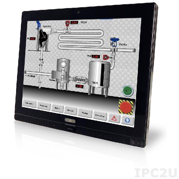Панельная рабочая станция с 15" TFT LCD, резистивный сенсорный экран, Intel Core i3 2.5+ГГц, 4Гб DDR3 RAM, HDMI, VGA, 1xGbit LAN, 3xCOM (1xRJ45), 5xUSB, отсек 2.5" SATA, 1xCF II, Mini USB/MicroSD на передней панели, 802.11g/n WLAN, Audio, ИП 90Вт