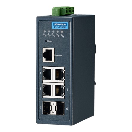 Управляемый коммутатор 4 10/100 BaseT(X) + 2G SFP, -10...+60C, 12-48VDC