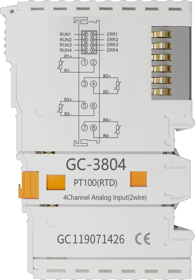 Модуль ввода-вывода для промышленного контроллера GCAN, 4 канала аналогового ввода по напряжению (-5/+5В), 16 бит АЦП, 24VDC