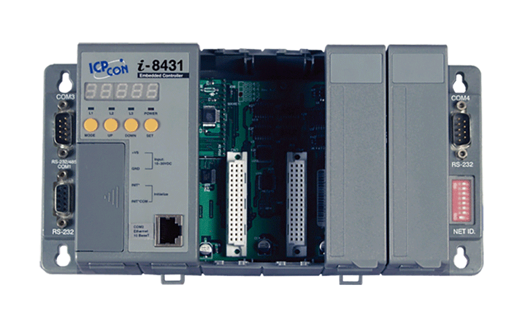 PC-совместимый промышленный контроллер 40МГц, 512кб SRAM, 512кб Flash, 2xRS232, 1xRS232/485, Ethernet 10BaseT, 7-сегментный индикатор, 4 слота расширения, Mini OS7