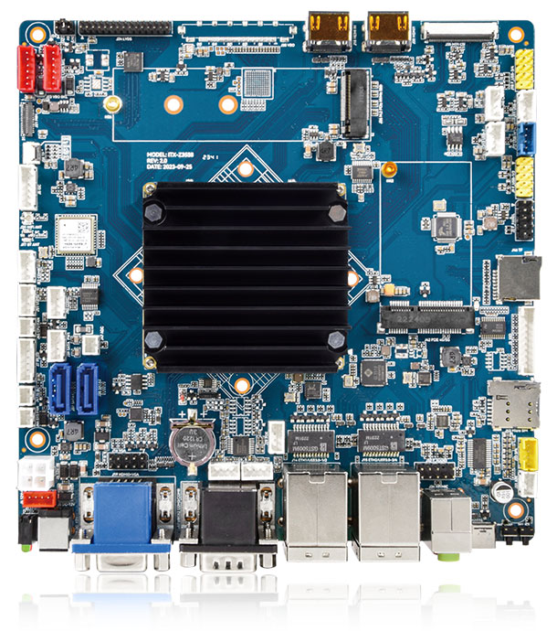 Процессорная плата ITX на базе RK3588 8Гб RAM, 128ГБ eMMC, HDMI, VGA, 2xLAN, 4xUSB3.0, 7xUSB2.0 7xCOM, Audio, 2x SATA,GPIO, I2C, GPS 1x m.2 2280 PCIe, miniPCIe, Wi-Fi6, BT 5.0, 9-15В DC-jack
