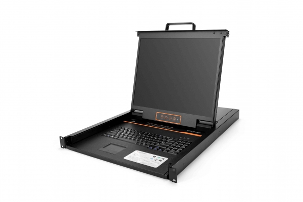 1U консоль для 19" стойки 19" TFT LCD монитор, клавиатура 99 клавиш, 16xKVM DVI порт, тачпад, 100-240В AC