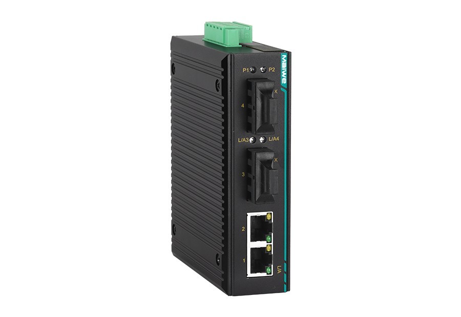 Компактный неуправляемый коммутатор Layer 2 на Din-рейку, 2x100M оптоволокно, 2x10/100M RJ45, Single-mode, FC разъем, 2км, AC85-264V/DC110-370V, IP40, -40...+85CMIEN2204-2S-FC20-AD220