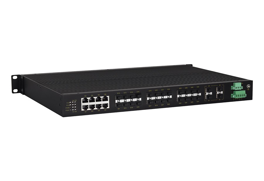 Управляемый коммутатор Layer 3 в 19" стойку, 4 порта 10Gigabit Fx, 24 порта Gigabit SFP, 8 портов RJ45, питание 85-264VAC/110-370VDC, IP40, -40...+75C