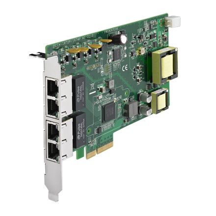Сетевая карта, 4 порта 10/100/1000, PoE, IEEE 1588, интерфейс PCI Express x4, 8кВ ESD, 2кВ EFT, 2.25кВ изоляция LAN и питания