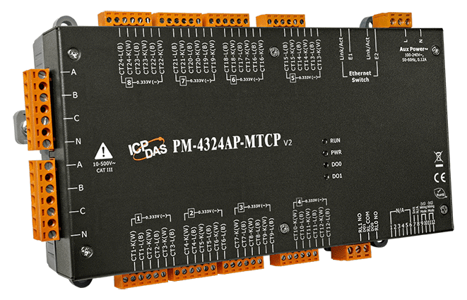 Многоканальный измеритель напряжения и тока(подключение до 8/24 цепей, 3ф/1ф), без токового трансформатора, до 500В, Modbus TCP, релейный выход 5A@250VAC/5A@30VDC, 85-264VAC-in