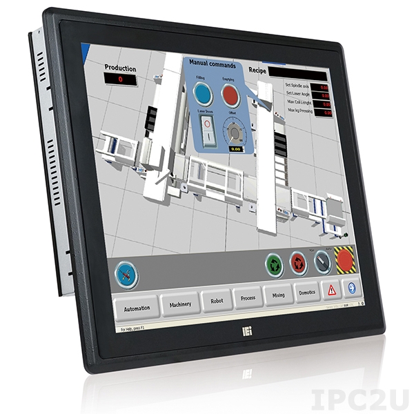 Безвентиляторная панельная рабочая станция с 17" XGA, резистивный сенсорный экран, Intel Celeron J1900 2.0ГГц, 2Гб DDR3L, 1x2.5" HDD/SSD, 2xUSB 3.0, 2xUSB 2.0, 3xCOM, VGA, 2xGbE LAN, 2xPCIe mini, Аудио, адаптер питания 9-36В DC