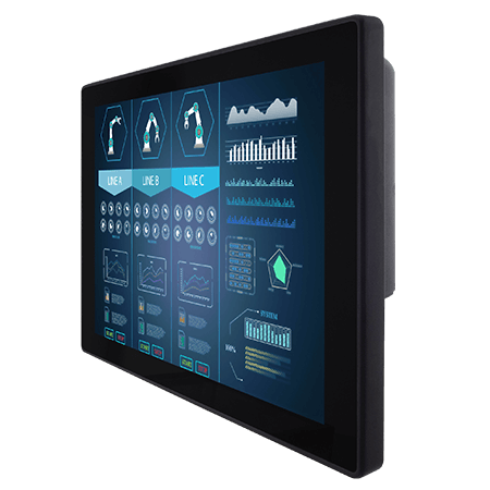 Промышленный 12.1" LCD монитор, разрешение 1024x768, яркость 500 кд/м2, полная защита IP65, емкостный сенсорный экран, VGA, питание 9...36В DC, -15...55