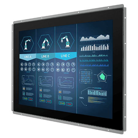 19" бескорпусной промышленный монитор, разрешение 1280x1024, яркость 250 кд/м2, VGA, HDMI, проекционно-емкостный сенсорный экран (USB), питание 12В DC, внешний адаптер питания