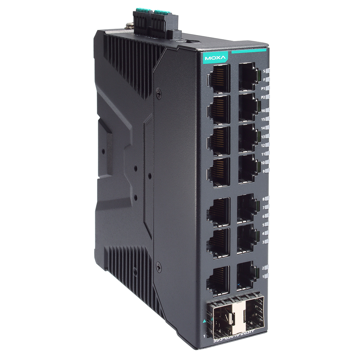 Промышленный 16-портовый коммутатор Ethernet, 14 портов 10/100/1000BaseT(X) RJ45, 2 порта 100/1000BaseSFP оптоволокно, выход реле 1A@24VDC, -10...+60C, 9.6-60VDC-in