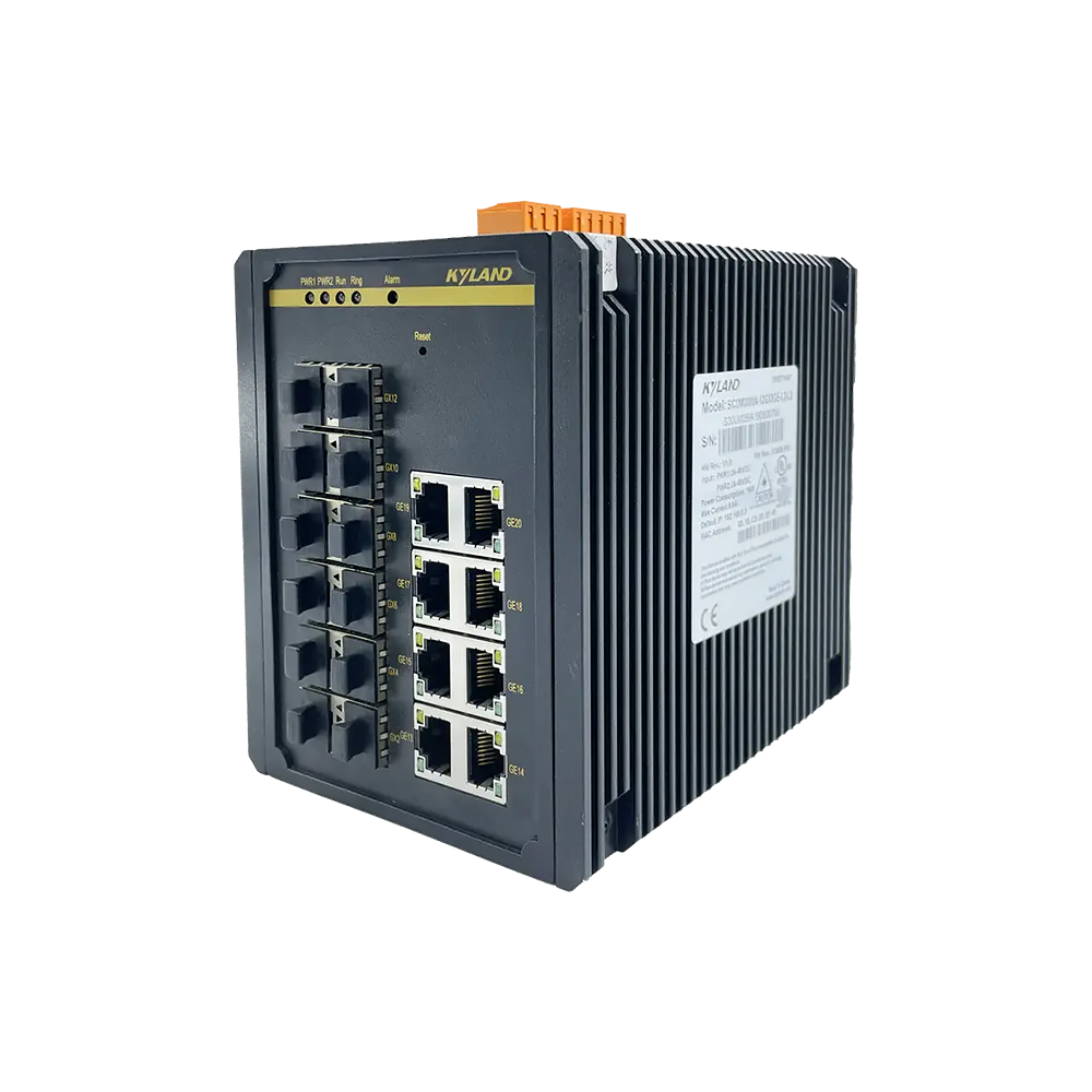 Промышленный управляемый коммутатор, 12 SFP слотов 100/1000Base-X, 8x10/100/1000Base-T(X) RJ45, IEEE1588, IEC61850, резервируемое питание 24-48VDC (18-72VDC), -40...+75C