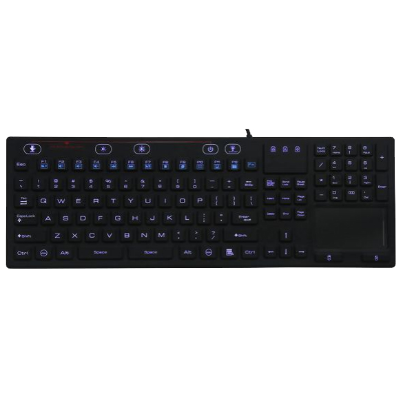 Медицинская влагозащищенная силиконовая клавиатура 118 клавиш c тачпадом и антибактериальным покрытием, USB 2.0, русская и англ. раскладка