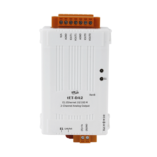 Модуль Ethernet, 2 канала аналогового вывода 0 ~ 10 V, 0 ~ 20 mA, 4 ~ 20 mA с изоляцией, 12-48VDC-in