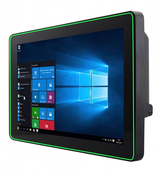 Безвентиляторная панельная рабочая станция 10.1" TFT LCD, 1280x800, емкостный сенсорный экран, Intel Celeron N2930 1.83ГГц, 4Гб DDR3, 128Гб SSD, COM, 2xUSB, 2xGbit LAN(1xPoE), встр.динамик, LED индикатор на передней панели (RGB лента), питание 12В DC