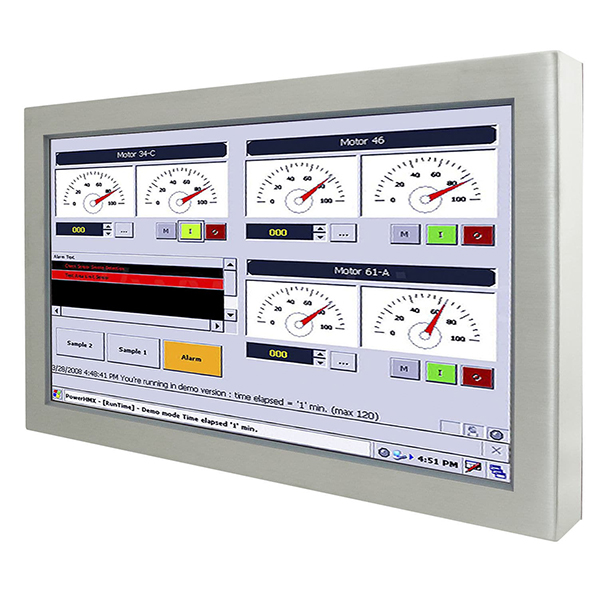 Безвентиляторный панельный компьютер, 21.5" LCD Full HD, резистивный сенсорный экран, Intel Core i5-5200U 2.2ГГц, 4Гб DDR3L, 128Гб mSATA SSD, защищенные порты: 1xCOM, 2xUSB, 1xLAN, 1xMini PCIe, адаптер питания 12В DC 80Вт, IP65