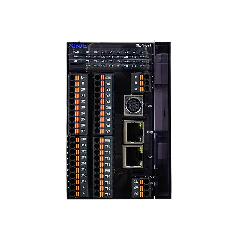 Программируемый логический контроллер, 16 каналов ввода NPN, CANopen, CAN, 16 каналов транзисторного вывода, 3 канала счетчика AB, 1 RS232, 1 RS485, 2 LAN, 24VDC-in